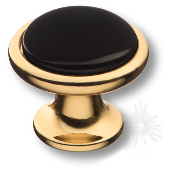 Ручка кнопка 3008-60-BLACK, материал Замак Керамика, цвет Черный, отделка Золото Керамика, 30*d=35/22 мм